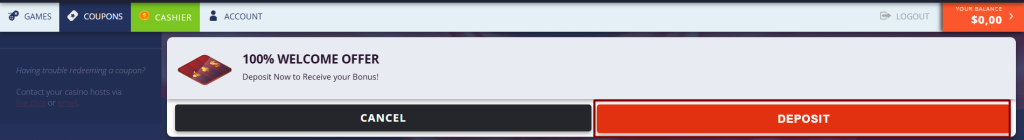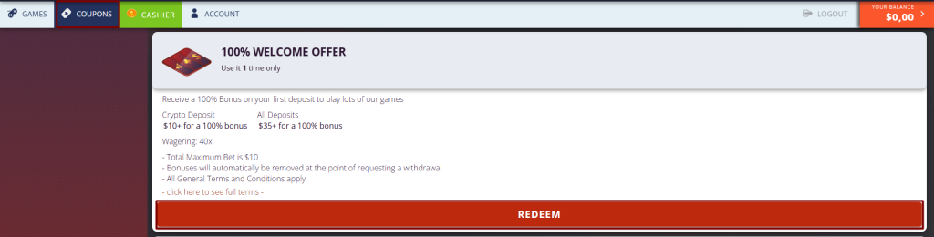 This guide explains how to claim Cherry Jackpot’s 100% First Deposit Bonus, available to new players only. This bonus can be used once per player and is valid across all payment methods, including cryptocurrency.
