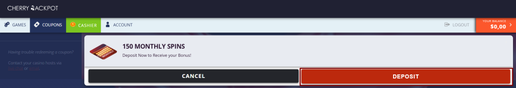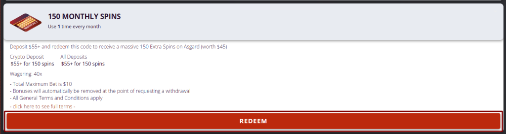 This guide explains how to redeem Cherry Jackpot’s 150 Extra Spins on Asgard, available once per month with a qualifying deposit of $55 or more. This offer is open to both standard and crypto depositors.