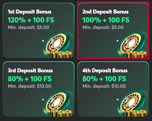 This guide explains how to claim BC.GAME’s 100% match bonus up to $1,000 plus 100 Gratis-Spins on your second deposit. This is the second part of the BC.GAME Welcome Package, which includes four total deposit bonuses.