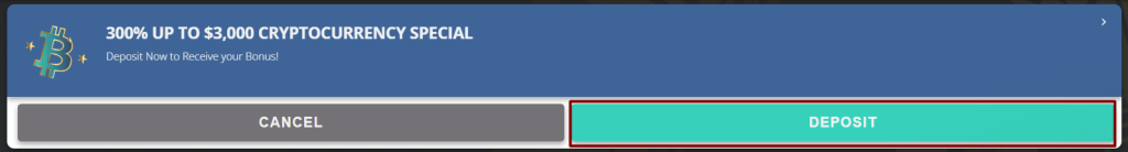 Once the coupon is active, make your crypto deposit of $10+ for a 300% match.