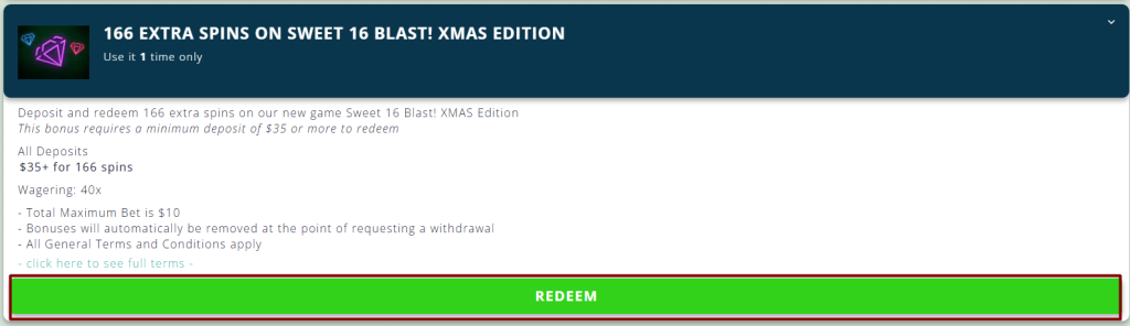 Look for the “166 Extra Spins on Sweet 16 Blast! XMAS Edition” coupon.