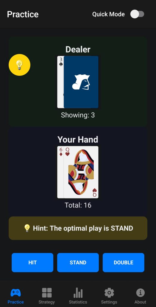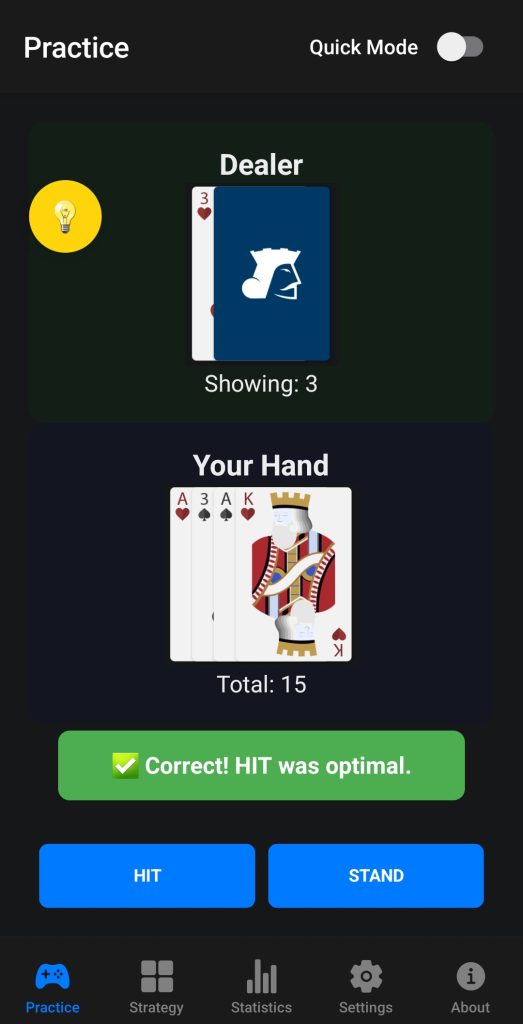 That’s exactly what the Blackjack Strategy Trainer App provides a way to internalize the correct plays until they become automatic.