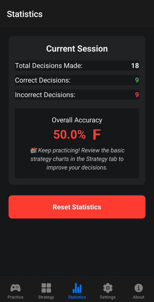 No. This app focuses on basic strategy, the foundation every player must master first. Card counting requires a separate set of skills and is not included in this trainer.