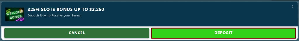 Find the “325% Slots Bonus up to $3,250” coupon.