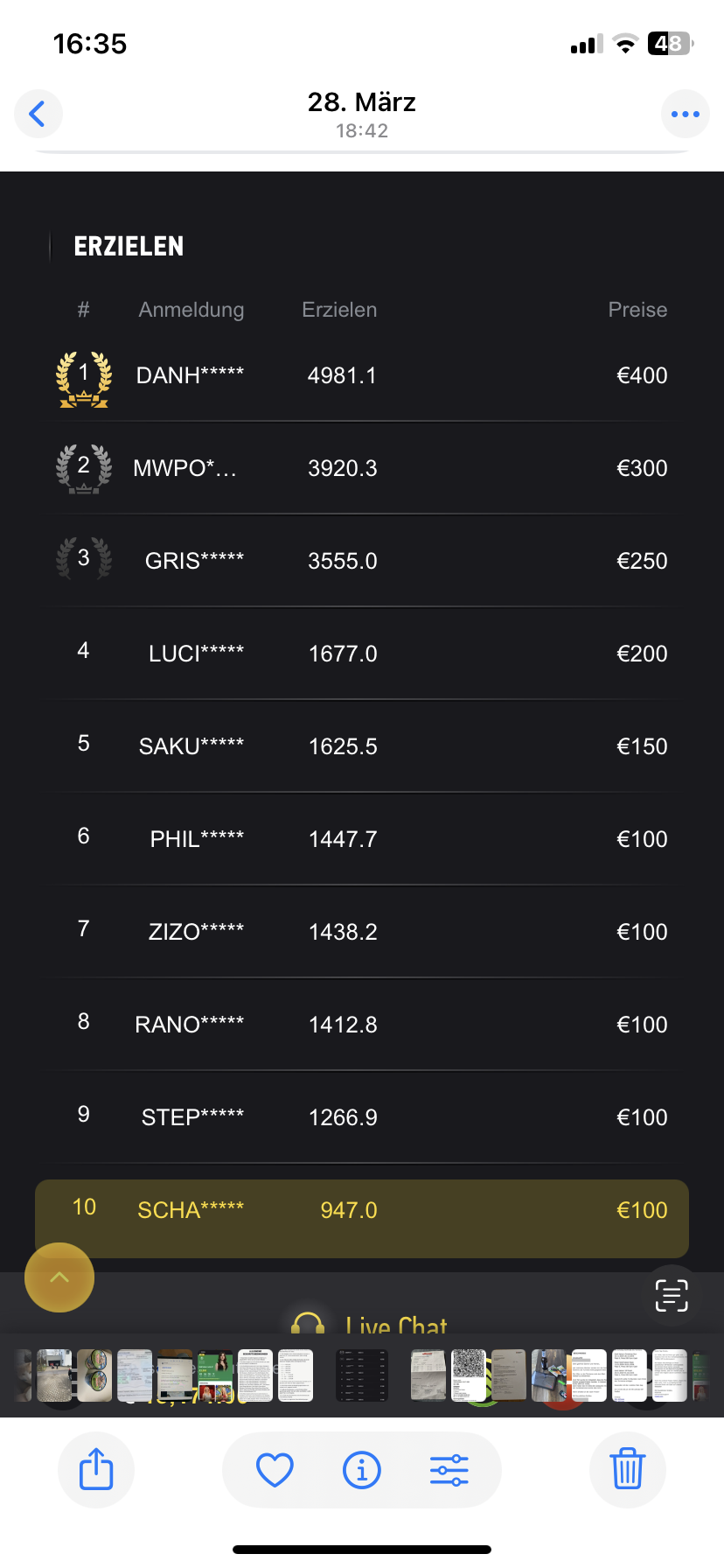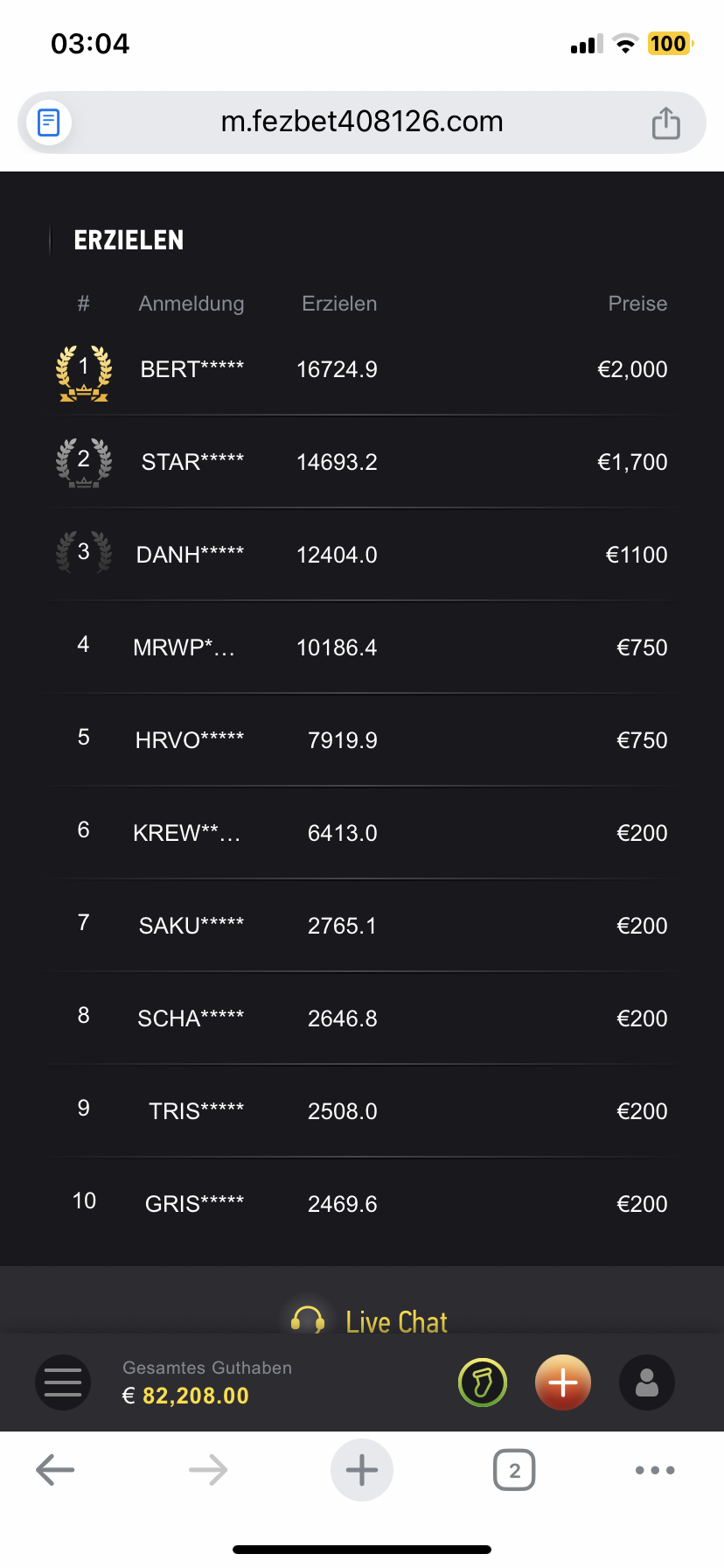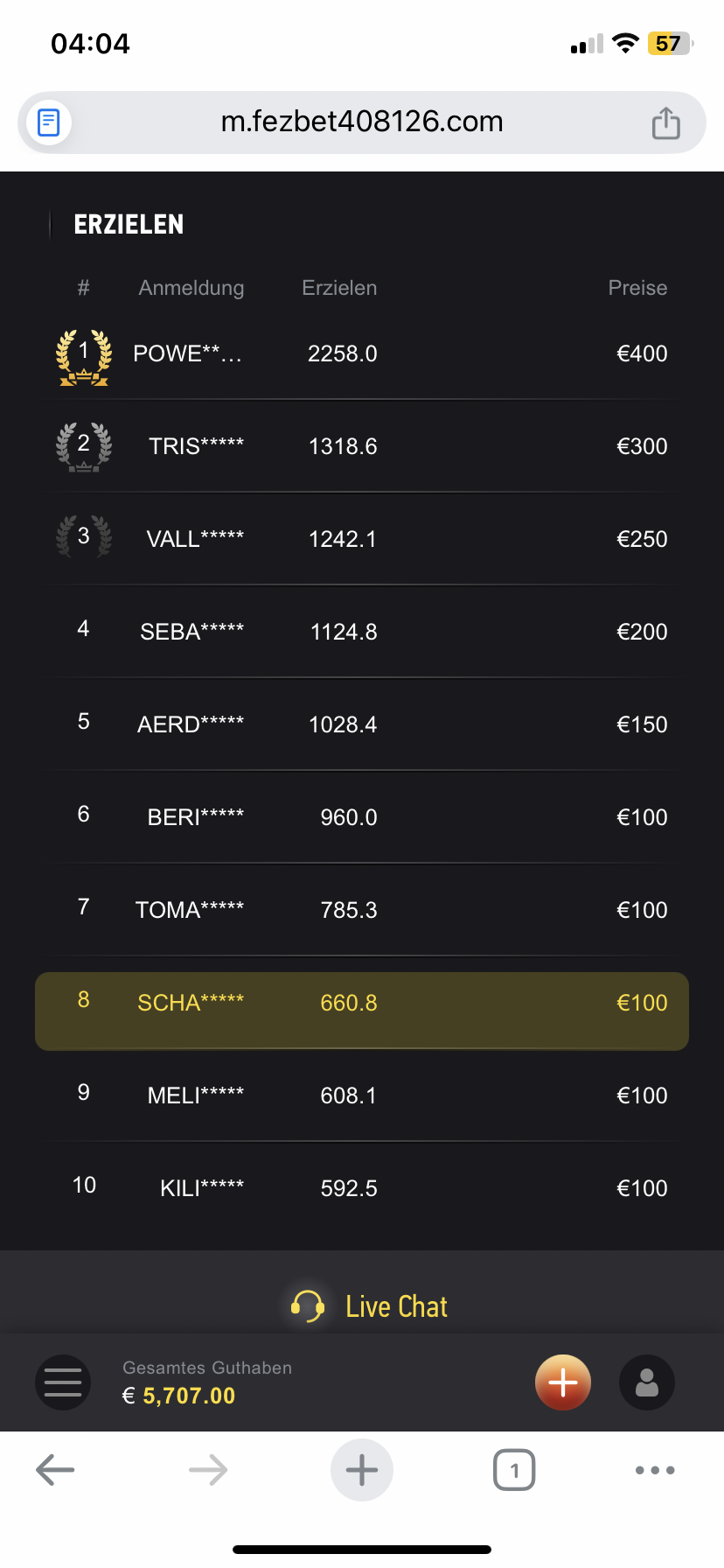 Da Sie erwähnt haben, dass das Casino bisher nicht reagiert hat, können wir zwar nicht garantieren, dass es auf unsere Anfrage reagiert, aber es ist wichtig, dass dieser Fall gut dokumentiert ist. Bitte posten oder laden Sie daher die Turnierinformationen (Name/Datum), die Endplatzierungen/Rangliste und, falls vorhanden, einen kurzen Nachweis Ihrer Kontaktversuche hoch.
